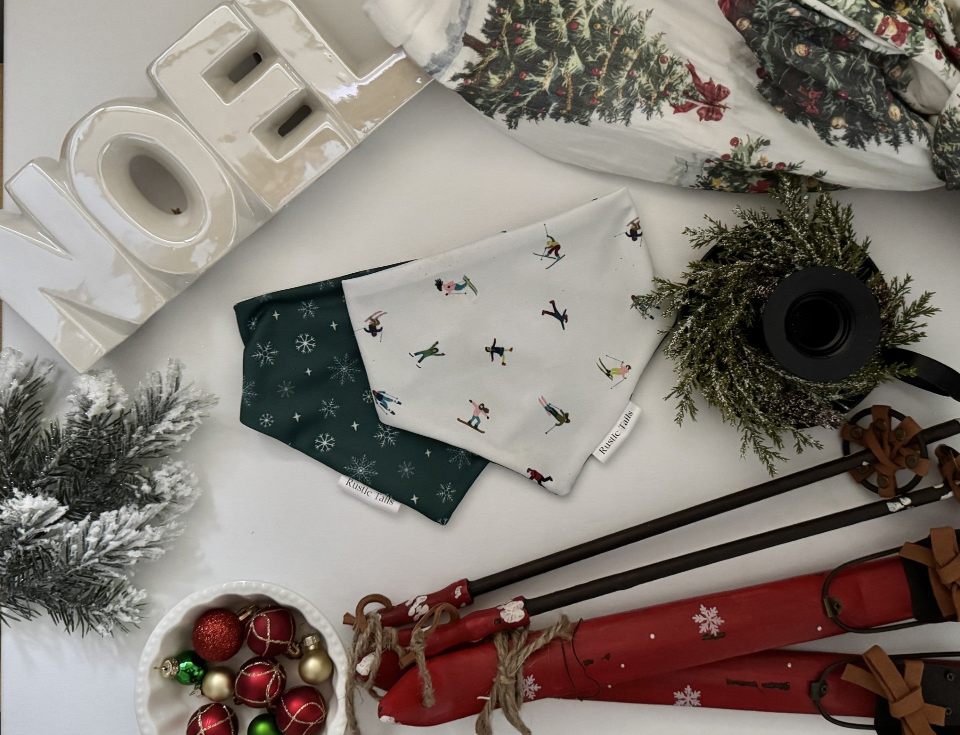 SKIERS & SNOWFLAKES DOG BANDANA